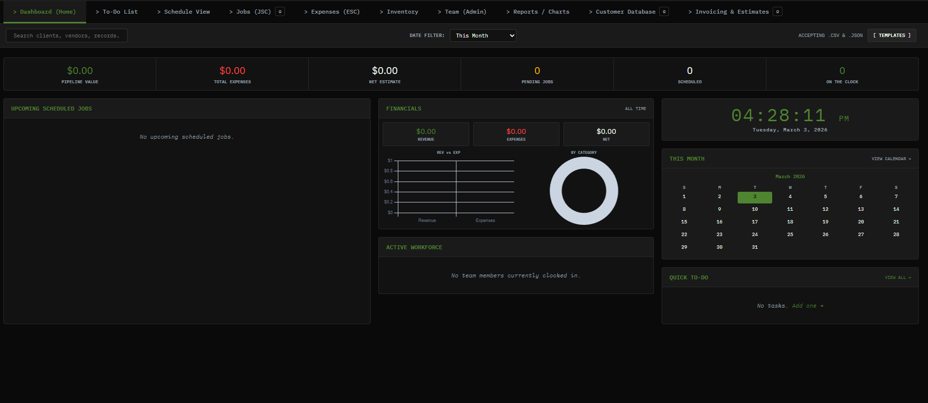 A full-stack ERP system built for a Houston service company to manage their entire operation from one dashboard.
